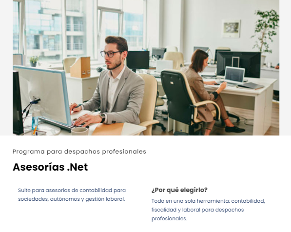 La suite Asesorías .Net desarrollada por Golden Soft es otro software de asesorías muy orientado a las pymes que nos permite gestionar los aspectos contables, fiscales y laborales. Este mismo desarrollador cuenta con módulos específicos para gestionar contabilidad, autónomos y nóminas.