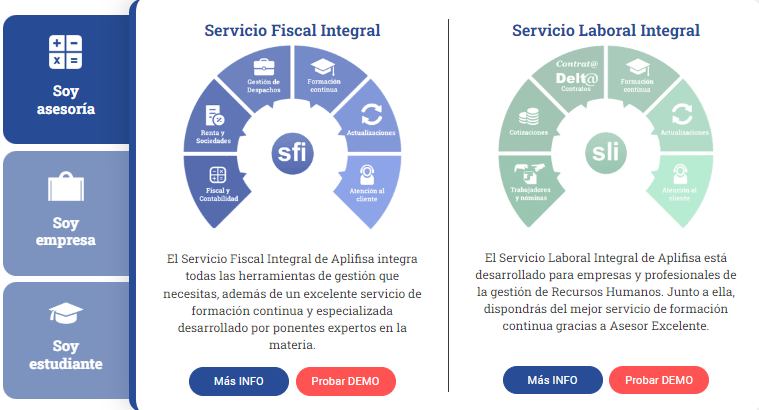 Aplifisa es una empresa especializada en desarrollar software para asesorías instalables en local, pero provistas de almacenamiento on cloud. Además, los despachos pueden contratar sus soluciones tecnológicas de manera separada o conjunta.