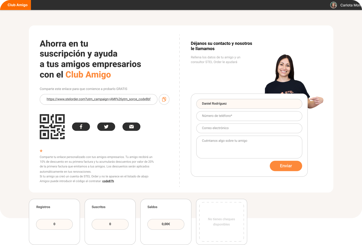 Compartir STEL Order con tus amigos nunca había sido tan fácil. Mejoramos la movilidad del Club Amigo, incluyéndolo también en la app. Comparte contactos desde tu agenda y utiliza el QR para recomendar STEL Order en menos de un minuto.