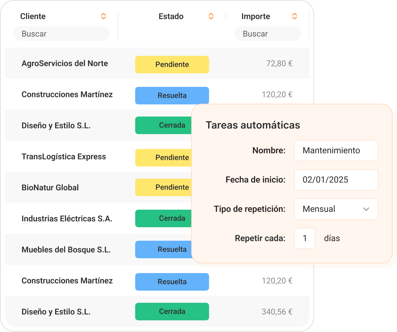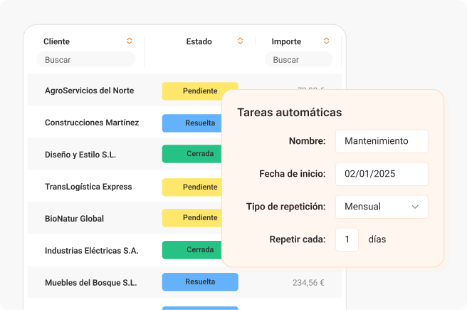 Automatiza tareas programando inicio, repeticiones, frecuencia y fecha de finalización.