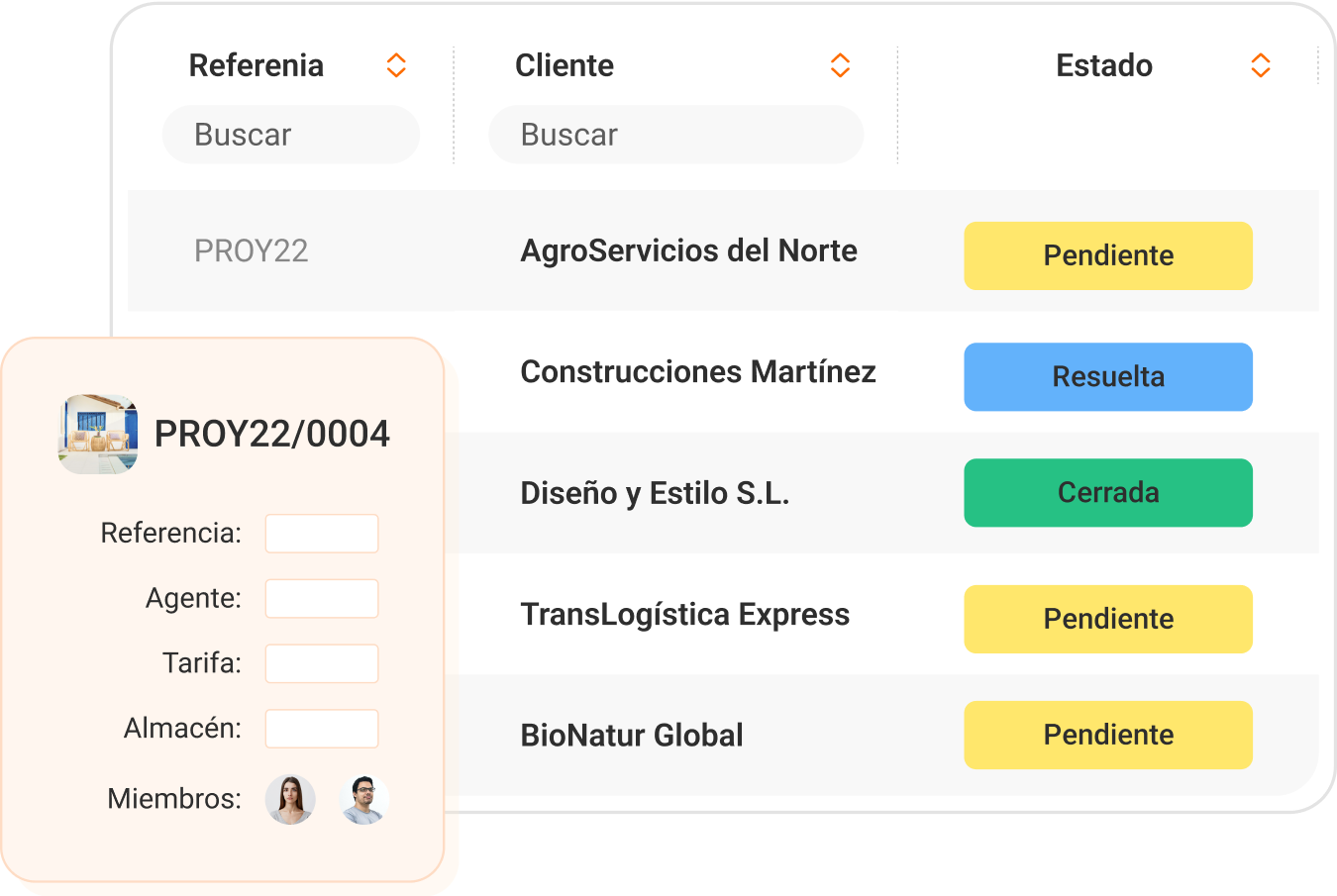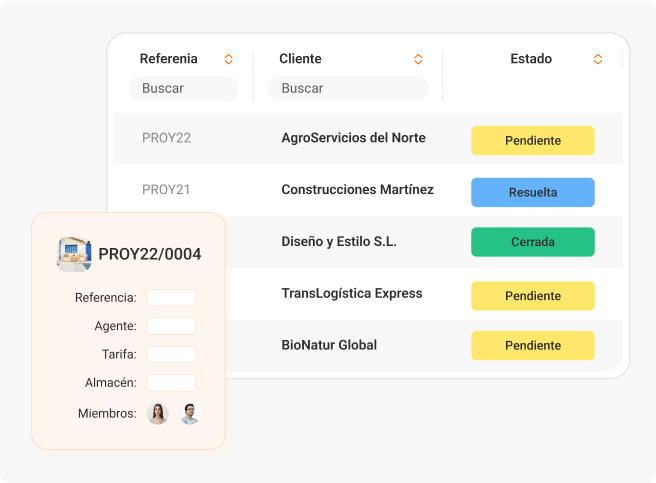 Visualiza el estado de las incidencias por cliente, empleado o catálogo, filtrando por estado. También puedes consultar las incidencias junto con los presupuestos, pedidos o albaranes relacionados.