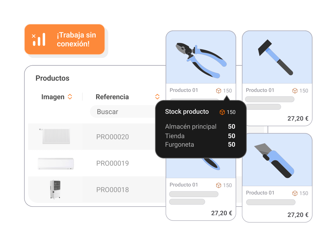 Visualiza y gestiona el stock disponible en cada almacén también desde el celular.