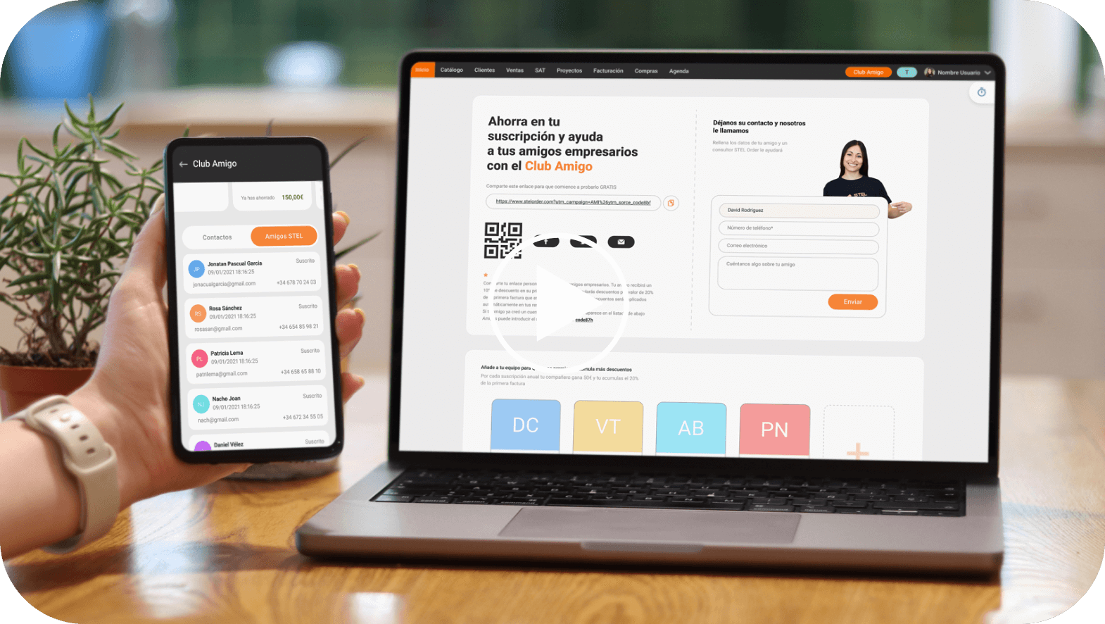 Con el Club Amigo ahorramos todos. No sólo ayudarás a un amigo a hacer su negocio y su vida más fácil, sino que también conseguirás un 10% de rebaja en la suscripción de tu amigo y un 20% para ti, ¡acumulable por cada amigo que contrate STEL Order!