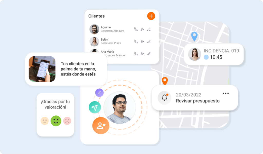 Registra todos tus contactos, observaciones, clientes potenciales y consulta todos sus informes. Usa plantillas para mejorar la comunicación y agilizar tu actividad comercial: convierte presupuestos en pedidos, gestiona entregas con firma y mucho más.