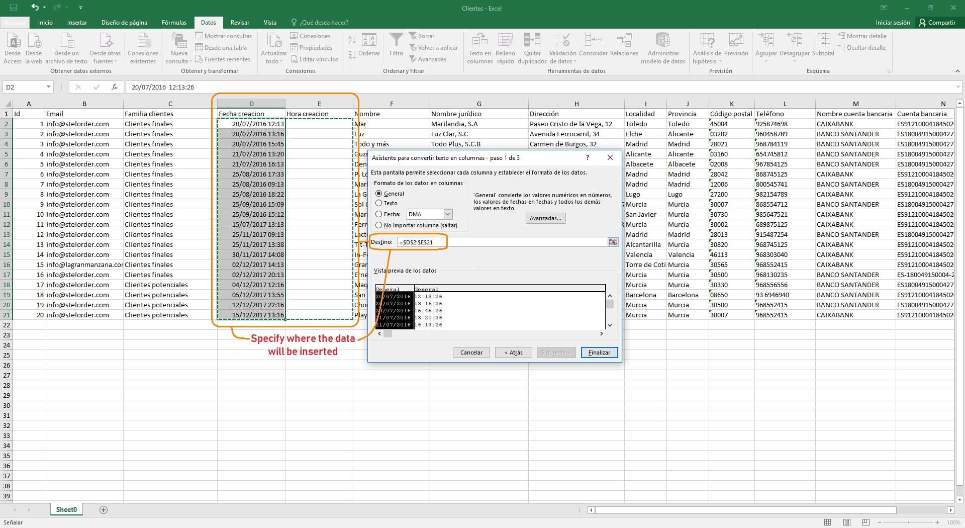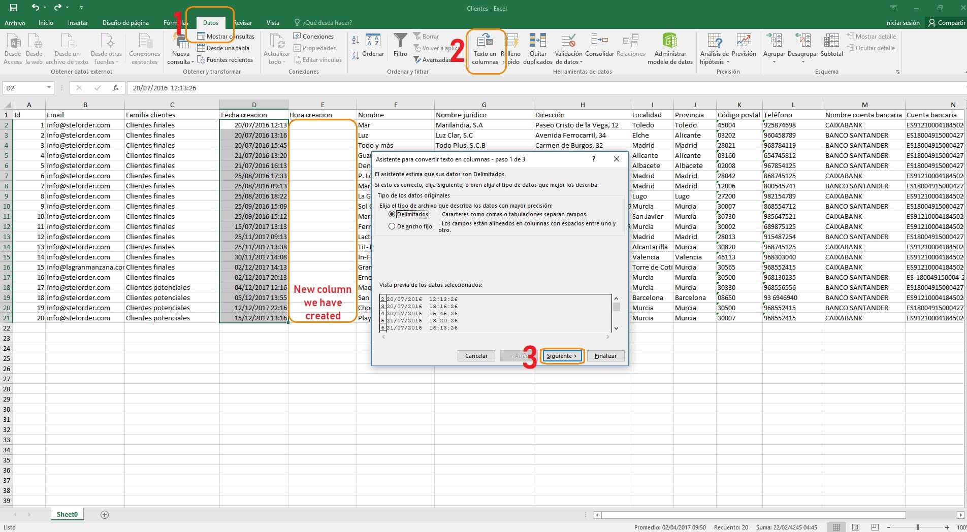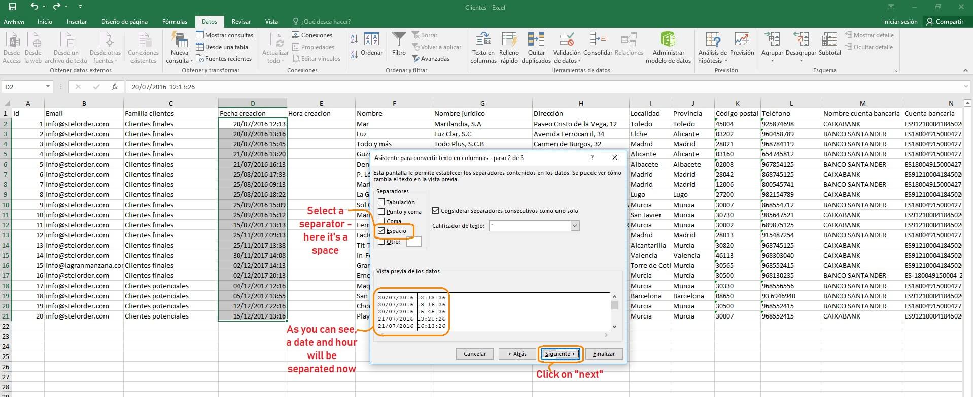 You should follow the same steps as in separating the date and hour. The only difference is that you’ll have to select a comma as a separator instead of a space.