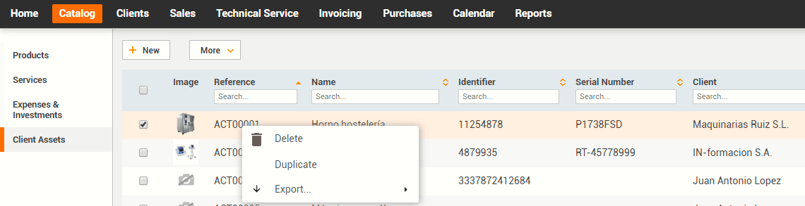 You can now duplicate Assets in customers by clicking More > Duplicate, or directly by right-clicking on the list of Client Assets.