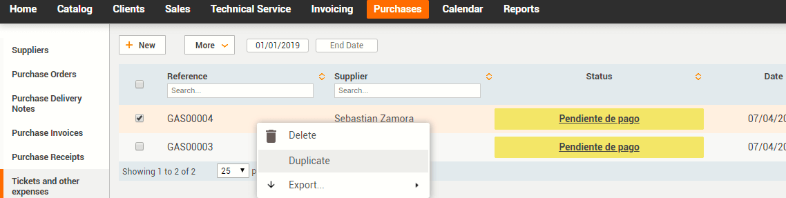 Now you can duplicate Tickets and other expenses by clicking More > Duplicate, or directly by right clicking from the Ticket and other charges list.