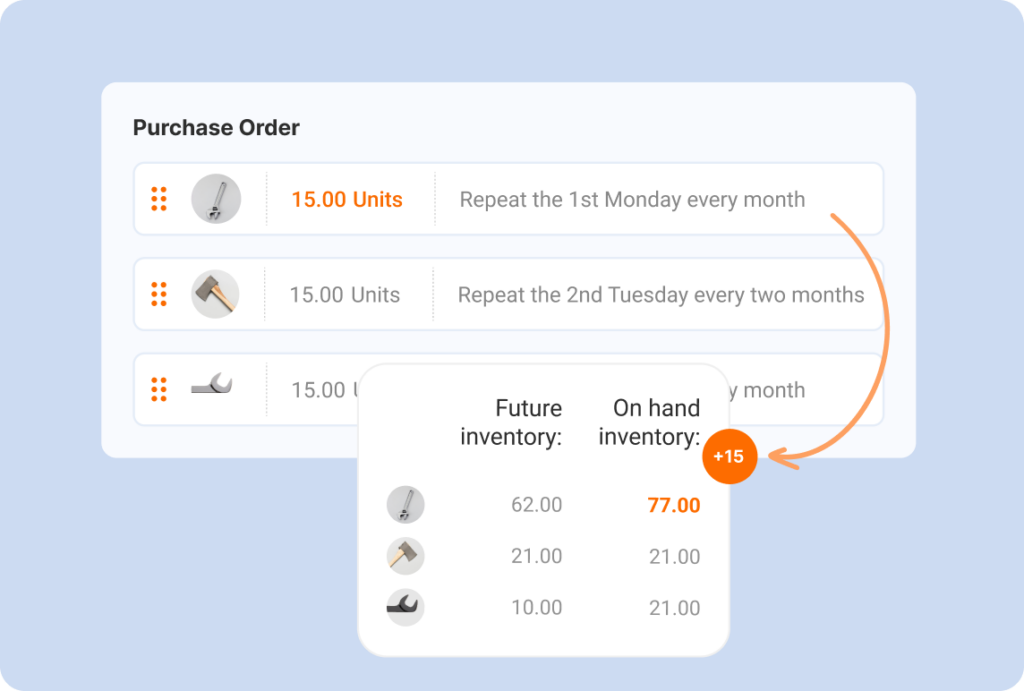 Detailed tracking of on hand and future inventory in your warehouses.