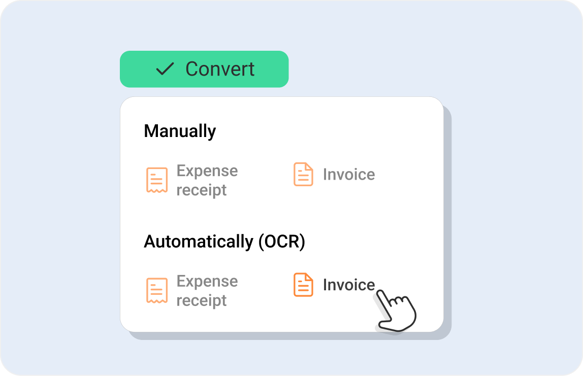 Turn your Inbox entries into receipts or invoices with just a few clicks.