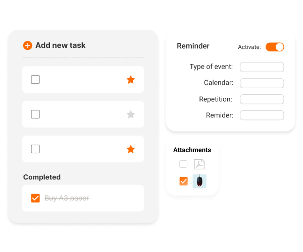 - Create events and regular reminders for visits, projects, or meetings with your customers.