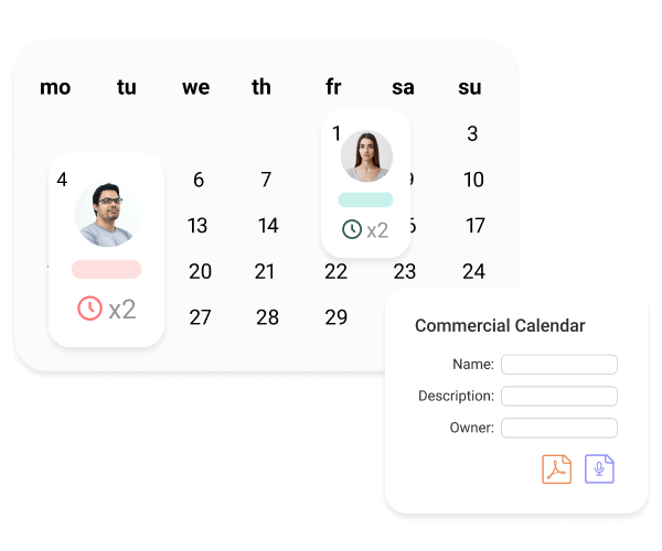 - Create different calendars for each member of your team and include related documents and customers.