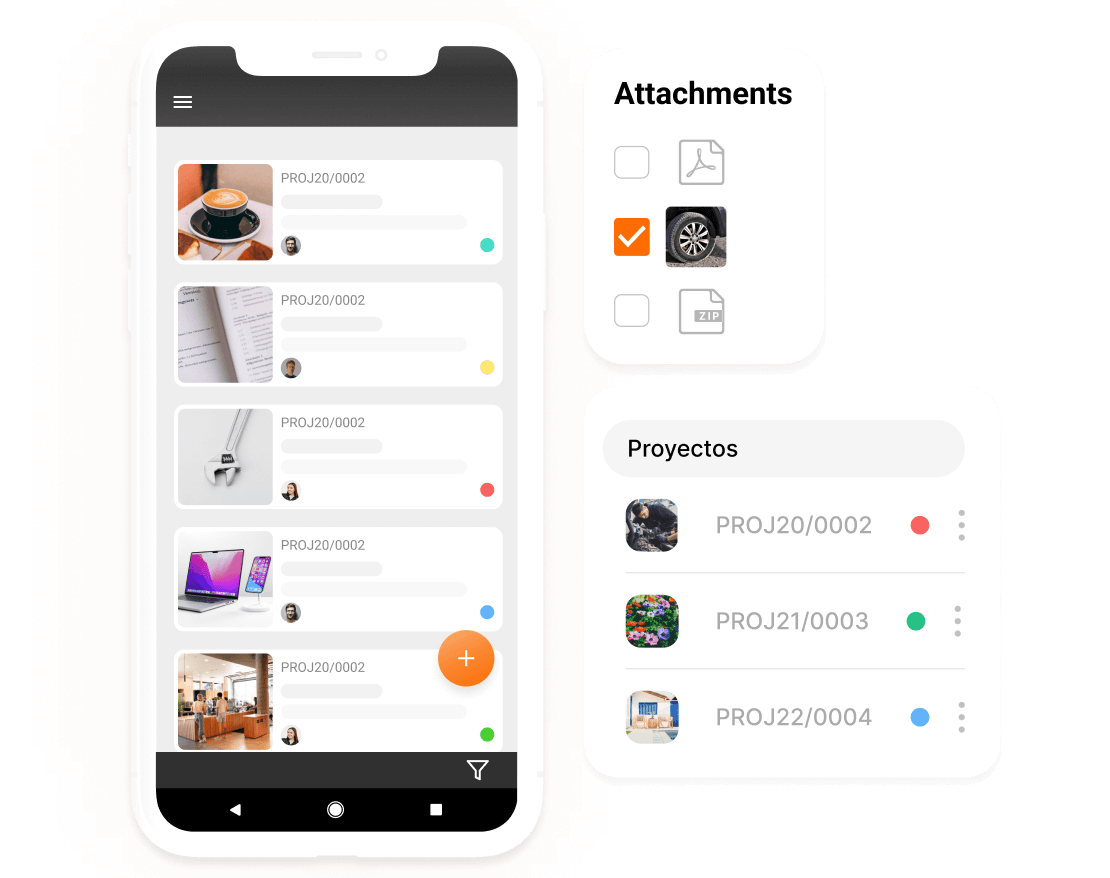 - Link any type of document to your projects: quotes, orders, delivery and work notes, and invoices.