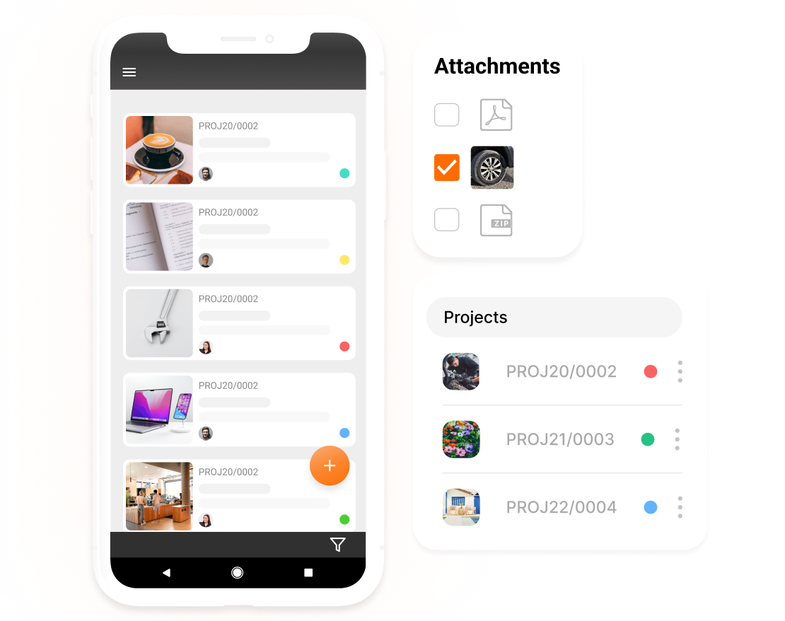 Yes. You can attach a wide range of documents and file types to all of your projects. This includes contracts, technical specifications, and installation manuals, among others. In addition, you can easily attach relevant images, such as pictures taken at the jobsite, designs and blueprints, or graphs and other visual materials, all of which ensures comprehensive and efficient project management.