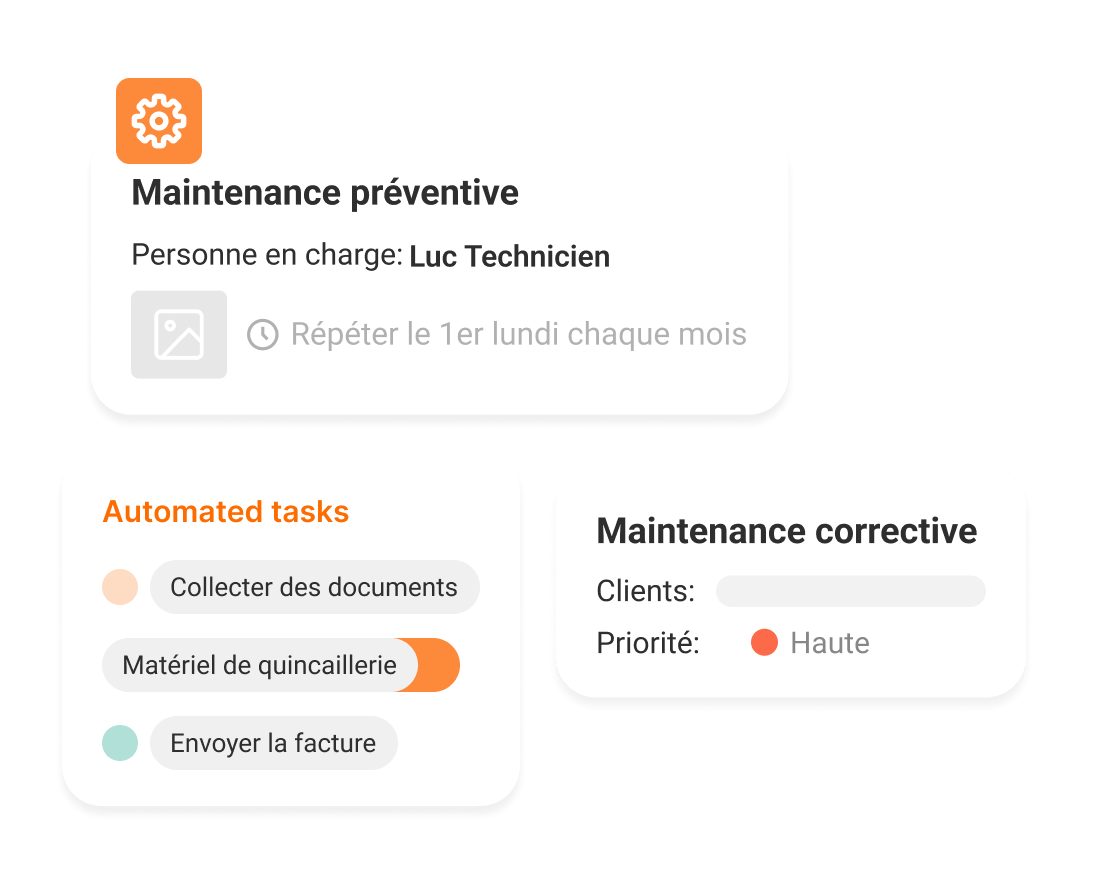Automatisez la gestion et la facturation récurrente de ces maintenances en créant des tâches automatiques qui vous aident avec des listes de contrôle ou avec la facturation à l’heure de votre choix.