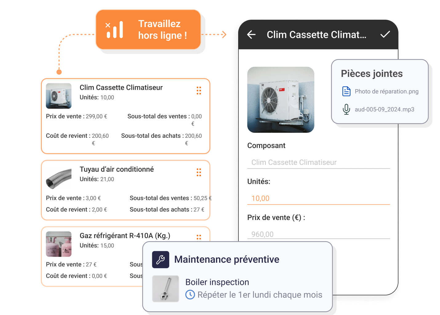 Grâce à l’inventaire des équipements de vos clients, vous pouvez planifier les révisions plus facilement.