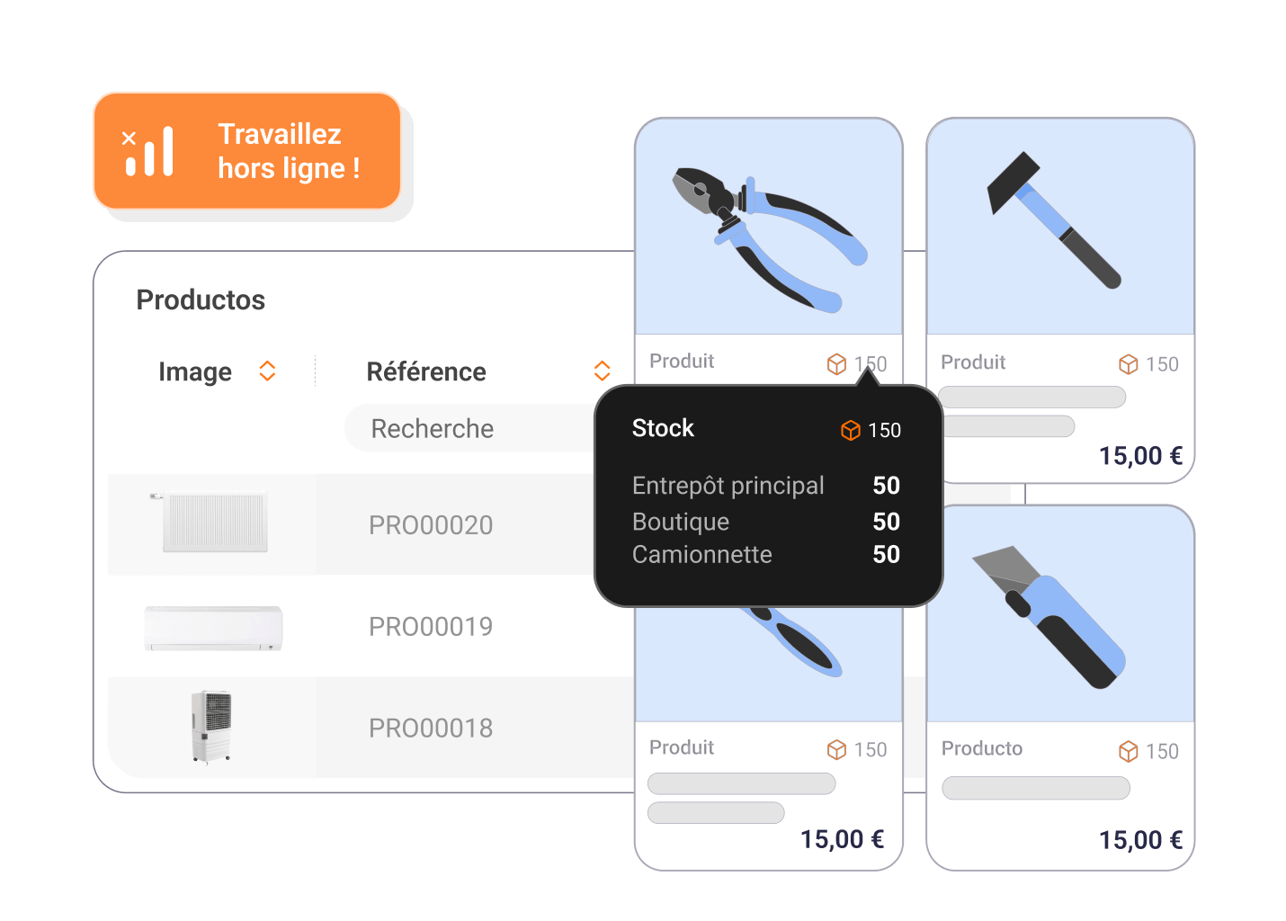 Visualisez et gérez le stock disponible dans chaque entrepôt, même depuis votre mobile.
