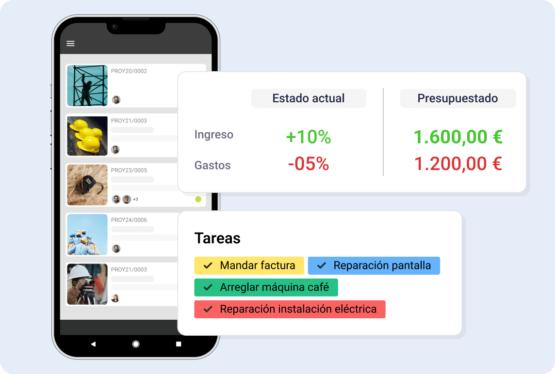 Crea informes de rentabilidad por proyecto en minutos, desde la palma de tu mano, gracias a la app.