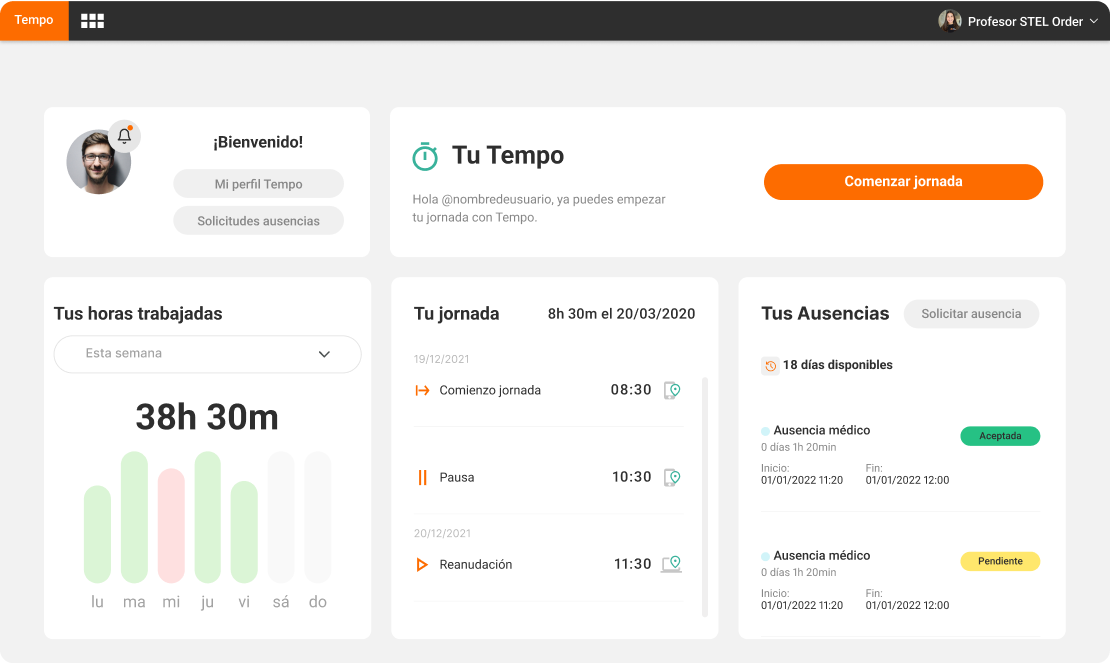 Con STEL Tempo llevarás el control horario y de ausencias de tu equipo.