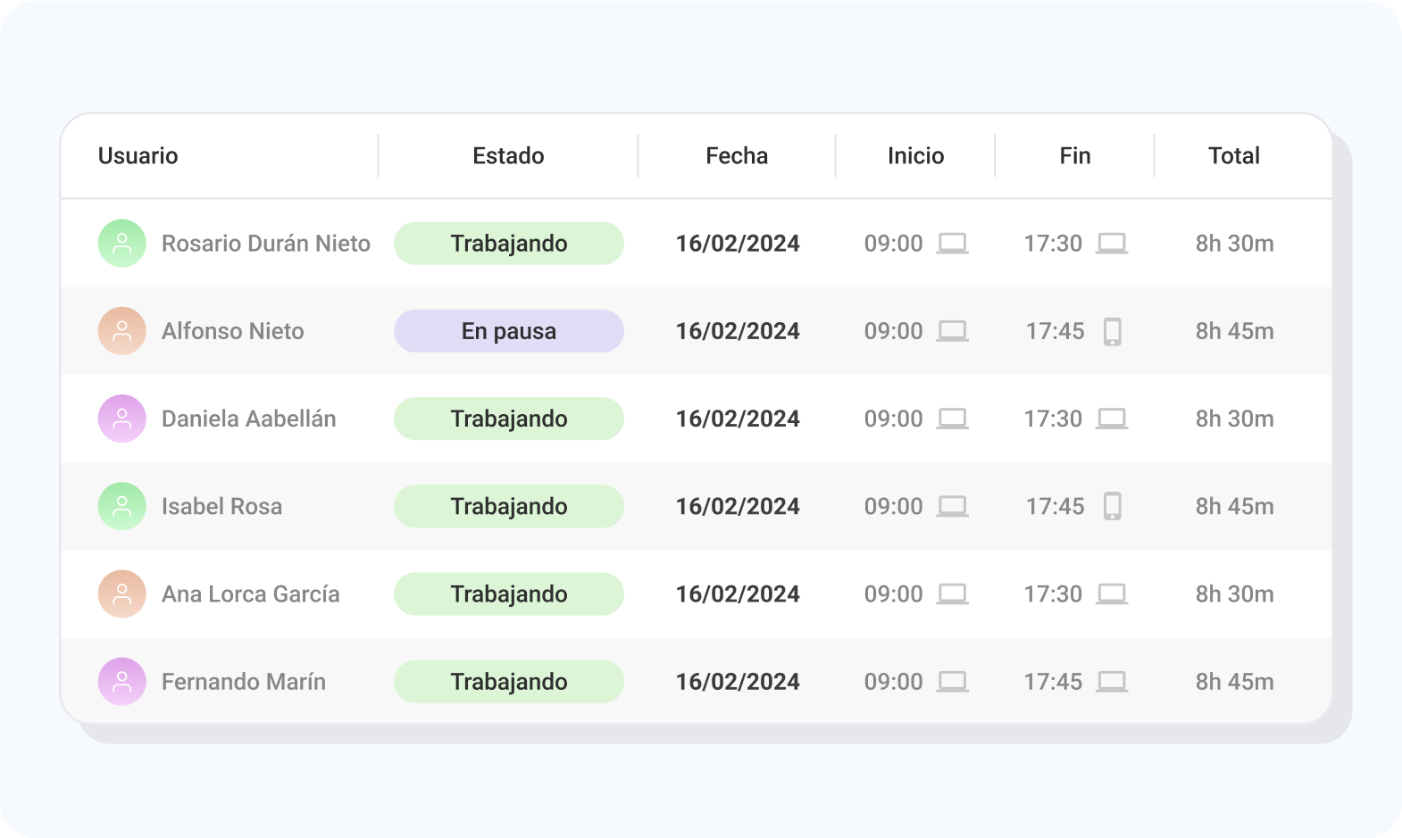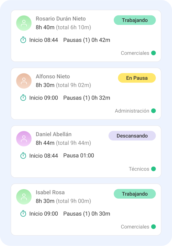Ten claro de un vistazo quién se encuentra trabajando o pausado