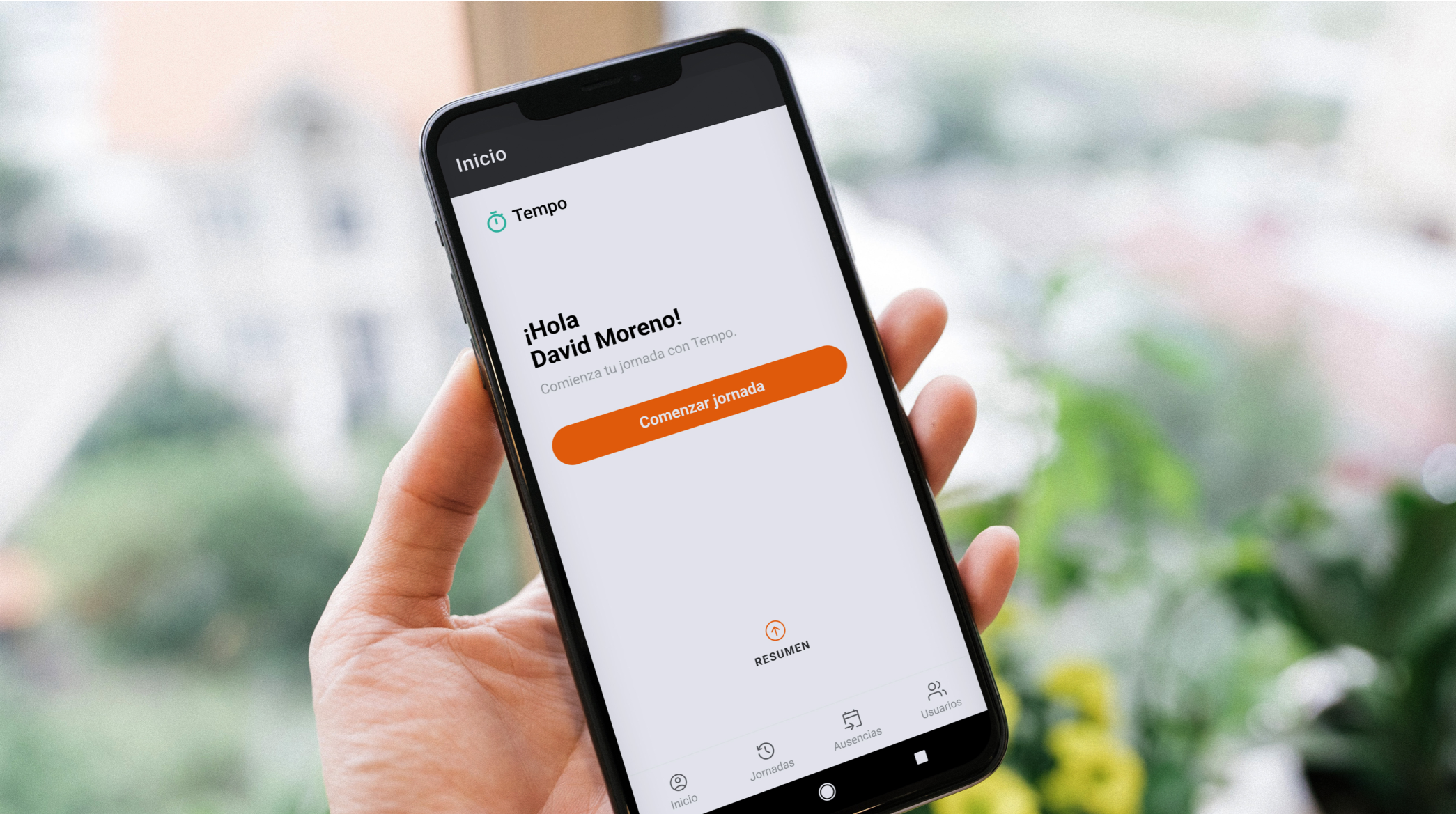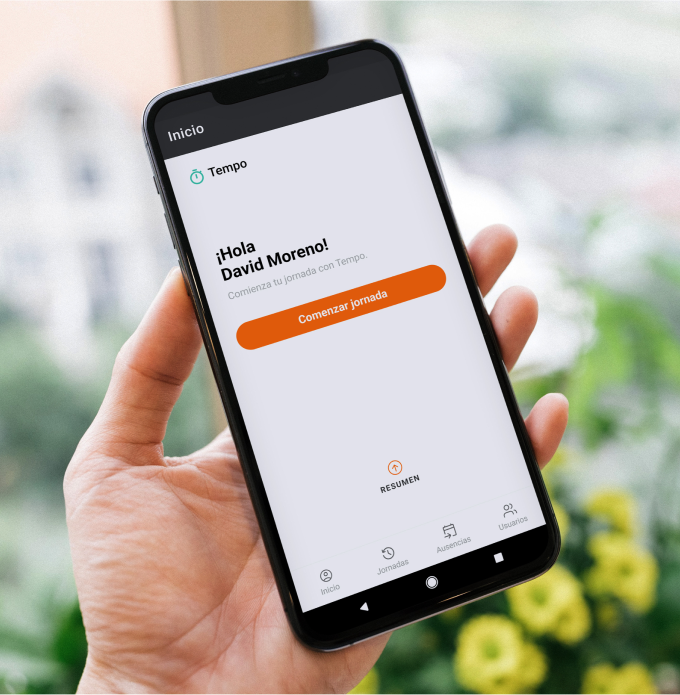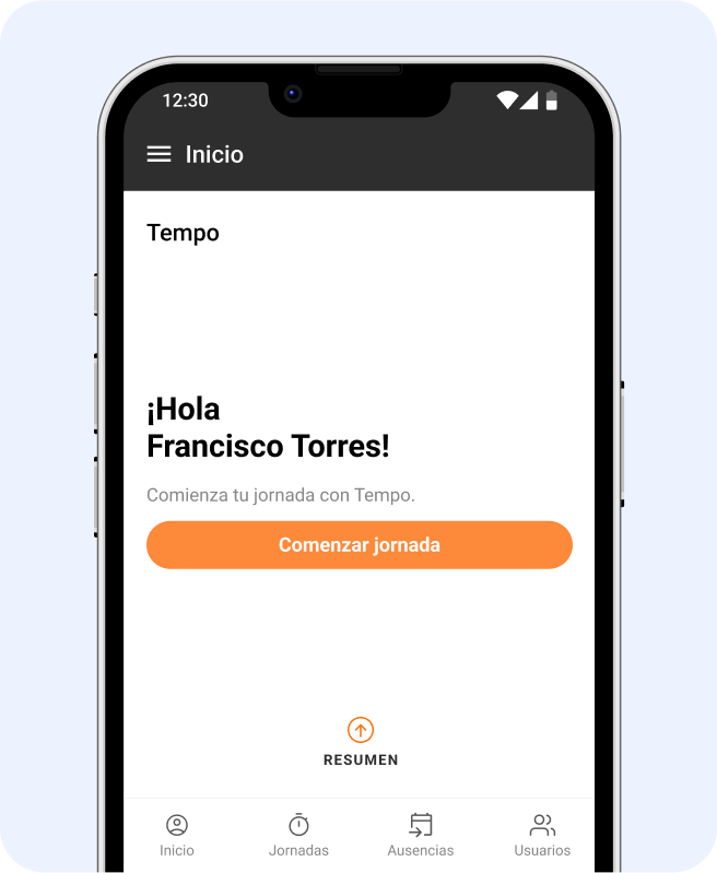 Todos tus usuarios tienen su perfil personal de Tempo dónde podrán realizar las entradas y salidas al trabajo, solicitar ausencias, ver si otros compañeros están trabajando y mucho más.
