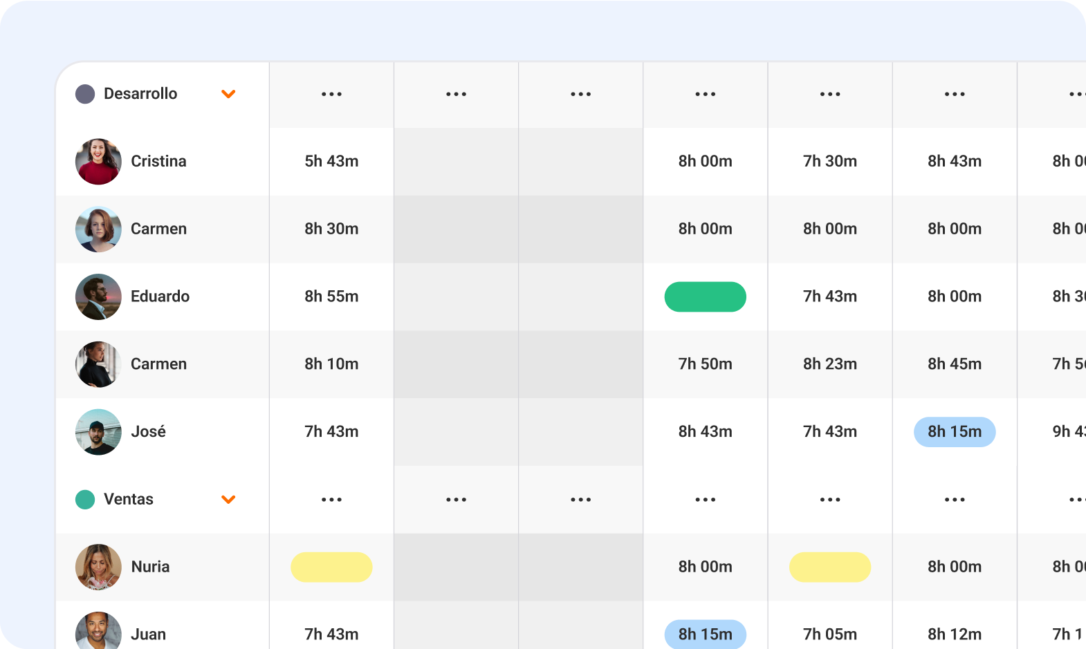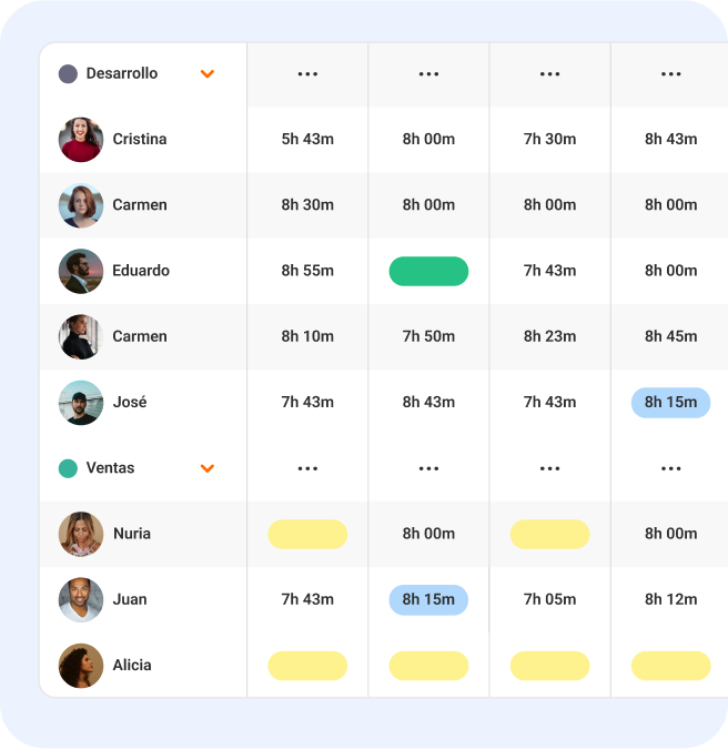 Organiza a tus empleados por departamentos y observa los detalles de sus jornadas