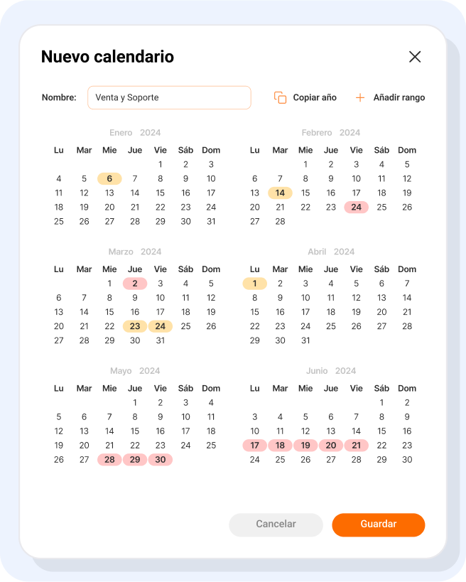 Configura tus calendarios definiendo festivos y días restringidos.