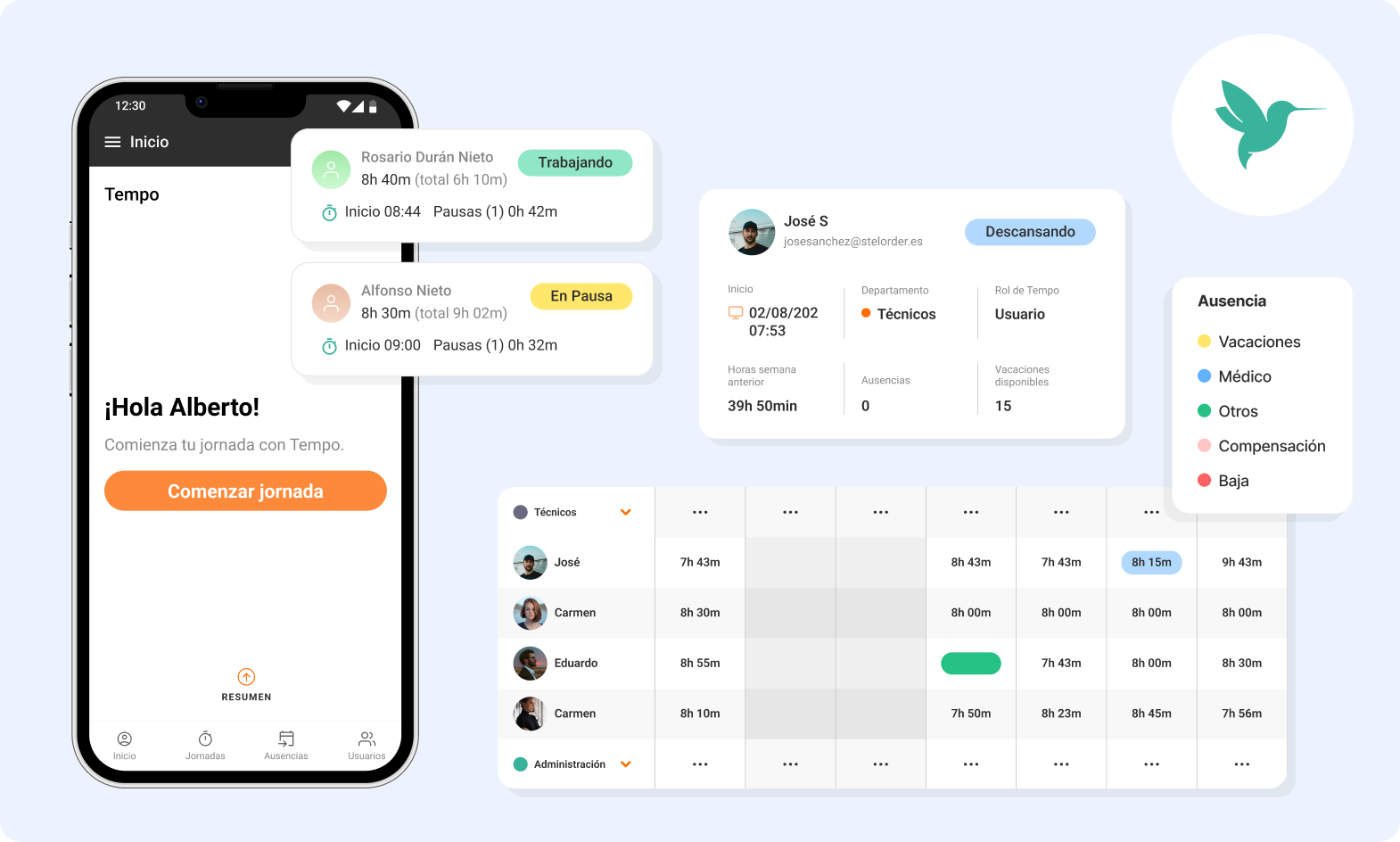 Sí, con un vistazo en Tempo, podrás saber quién está trabajando en este momento y quién está en pausa o ha finalizado jornada.