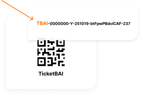 El código Ticket BAI, es un código de identificación de factura que relaciona una factura con su correspondiente fichero TBAI en XSIG y tiene una longitud de 39 caracteres.